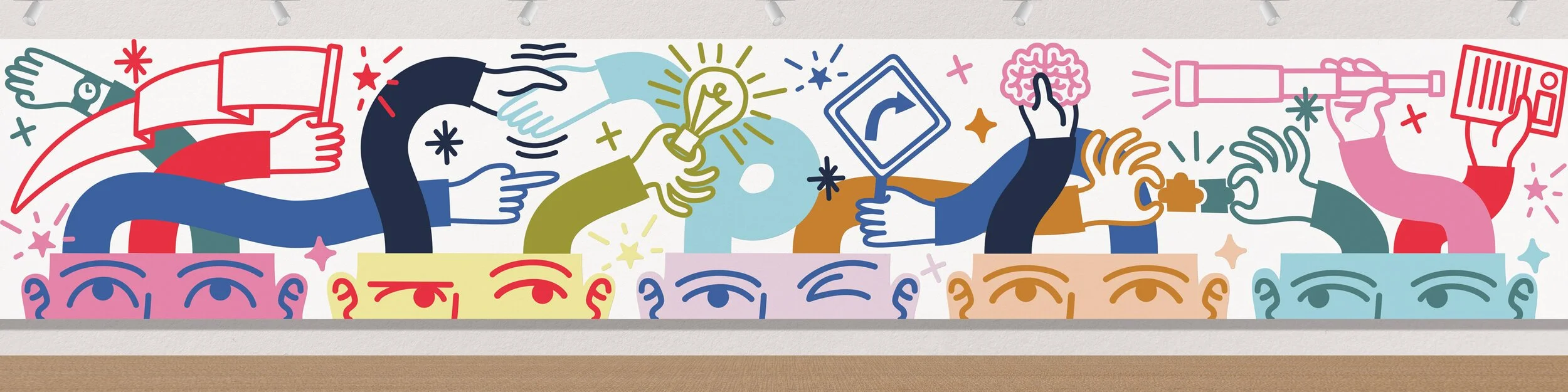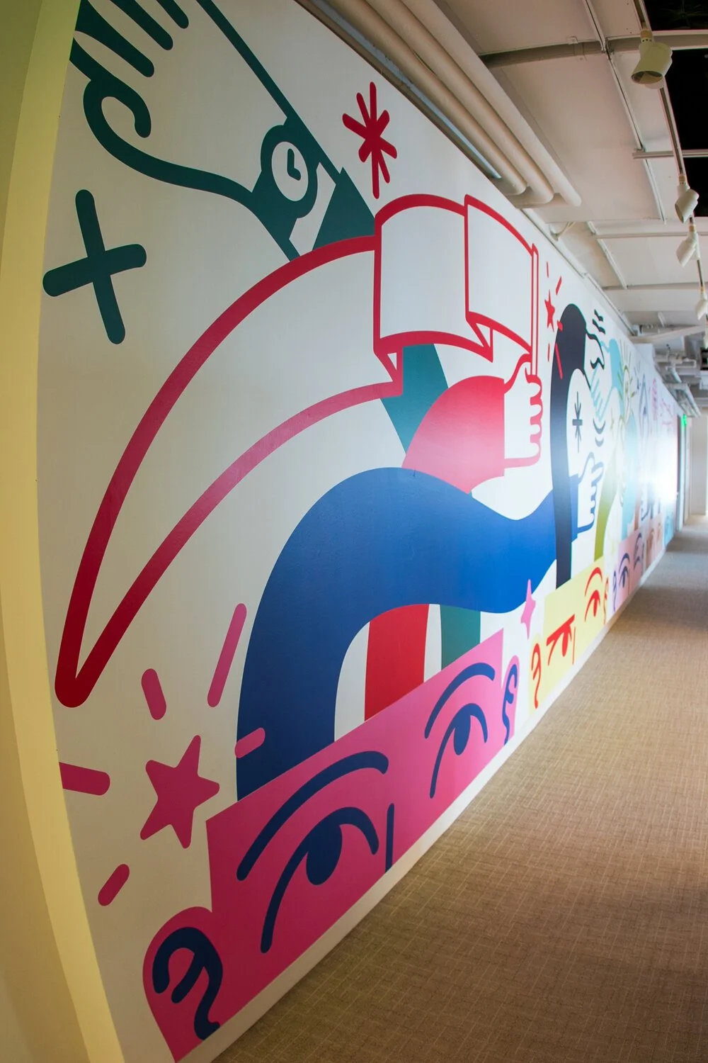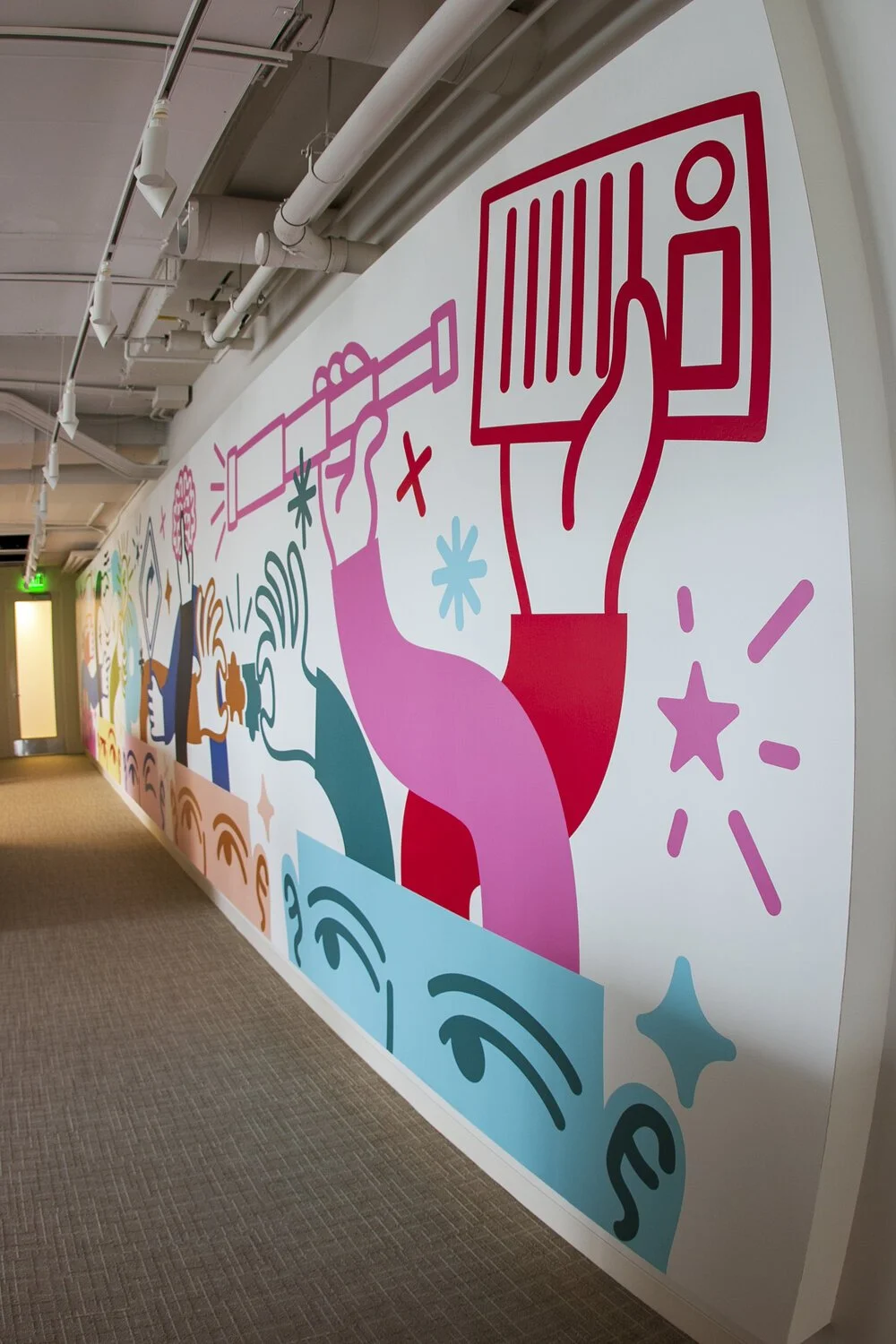 In 2020, I was tasked with creating an illustrated mural depicting the idea of “collaboration at the workpace” that would be displayed in all Kids2 offices worldwide.
