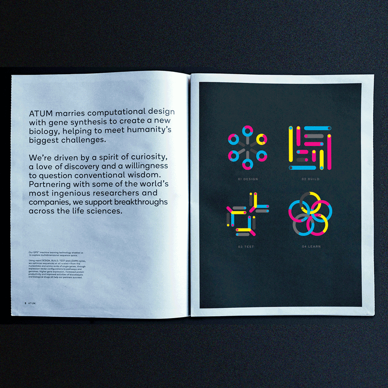 Typography and iconography design for a publication announcing Atum’s rebrand.